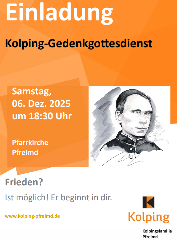 Herzliche Einladung zum Kolping-Gedenkgottesdienst am Samstag, den 06.12.25 um 18:30 Uhr in der Pfarrkirche