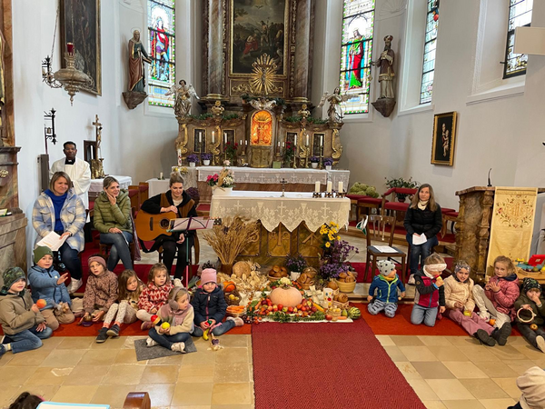 Seit 23 Jahren bietet die Kolpingsfamilie Pfreimd Minigottesdienste für Kleinkinder an. Nach den Sommerferien feierte das Vorbereitungsteam einen kindgerechten Gottesdienst zum Erntedankfest. Zahlreich kamen die Kinder mit ihren Müttern und Vätern, Omas und Opas in die Klosterkirche und erlebten das Erntedankfest mit Symbolen, Spielen und Gesang ganzheitlich.